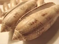 The lettered olive, Oliva sayana, is a species of large predatory sea snail, a marine gastropod mollusc in the family Olividae, the olive shells, olive snails, or olives.[3][4]