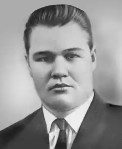 Lev Dmitrievich Mukhin (Russian: Лев Дмитриевич Мухин; 15 October 1936 – 25 April 1977) was a Soviet heavyweight boxer. He won a silver medal at the 1956 Summer Olympics, losing the final to Pete Rademacher, who scored three knockdowns before the bout was stopped. Coming into the final Mukhin had knocked out all his opponents, despite two of them knocking him down in the first round.[1][2][3]