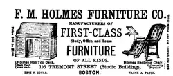 In 1866 Gould became connected with the F. M. Holmes & Company.[9] F. M. Holmes & Company, was a business that manufactured and sold furniture.[9] 1878 Gould purchased F. M. Holmes and Company[9] and ran it as the F. M. Holmes Furniture Company.[9] The F. M. Holmes Furniture Company factory was in Charlestown, and its warehouse and salesroom was in Boston.[9]