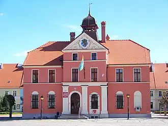 The Lewin Brzeski Town Hall seen from the south-west of the Market Square.