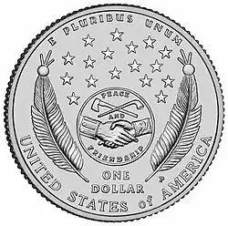 | Design | 17 stars with feathers to the left and right with an Indian peace medal designed by John Reich |