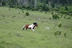 Grayson Highlands State Park, adjacent to the wilderness, contains balds, large open grassy areas at a high elevation with good views in many directions. Ponies have been introduced into the highlands and allowed to run wild while grazing the balds.[10]
