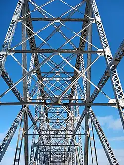 The Lewis and Clark Bridge is a historic bridge in Wolf Point, Montana, which once carried Montana Highway 13 across the Missouri River between McCone and Roosevelt counties. It is also known as Wolf Point Bridge, Missouri River Bridge, or Site No. 24RV438. The bridge is a five-span Pennsylvania through truss; its longest span is the longest through truss span in the state at 400-foot (120 m). Completed in 1930 by the Missouri Valley Bridge and Iron Company, the bridge was the first bridge across the Missouri River at Wolf Point and the only bridge along the river for a 350-mile (560 km) stretch. The bridge's opening ceremony, which took place on July 9, drew over 10,000 visitors and included five bands and a fireworks display. After its completion, the bridge became a popular tourist attraction for motorists in northeastern Montana and a point of civic pride for Wolf Point's residents.[2]
