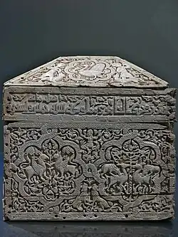 The Leyre Casket (Arqueta de Leyre, Museo de Navarra inventory number 1360-B, also known as the Leire Casket, Pamplona Casket) is one of the jewels of Hispano-Arab Islamic art. It is a casket or reliquary made of elephant ivory which was made in 1004/5 in the Caliphate of Cordoba.