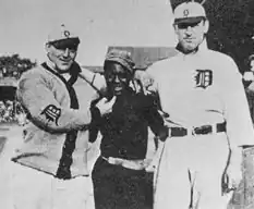 Ty Cobb emerged as Harrison's "main defender and patron," according to sportswriter H. G. Salsinger.[1] Unlike other Tigers players, Cobb did not rub Harrison's head for good luck, and ensured that he avoided detection while traveling in segregated trains and hotels. During the 1908 and 1909 offseasons, Cobb brought Harrison to Augusta, Georgia to work as a domestic and assistant at Cobb's automobile showroom.[1][6]