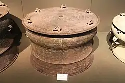 The Li-Lao bronze drums or Heger type II drums are a type of ancient bronze drums found in Southern China and Northern Vietnam invented and used by Tai-Kadai-speaking (or specifically Tai-speaking) ethnic groups who were known to Chinese as Lǐ (俚) or Lǎo (獠) and who historically inhabited the area between the Red River Delta and the Pearl River Delta from the 3rd to 8th century AD[1][2] and later the Muong people, an ethnic minority in Northern Vietnam, from the 10th to 12th century. Classified by Franz Heger as type II to distinguish with the Dian-Dong Son drums or Heger type I, the Karen drum or Heger type III. Li-Lao drums were found in Guangdong, Guangxi, and northern Vietnam, particularly in the Muong hills.[3]