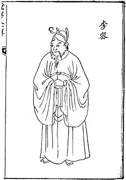 Li Mi (Chinese: 李密; 582 – 20 January 619[1]), courtesy name Xuansui (玄邃), pseudonym Liu Zhiyuan (劉智遠), was a Chinese military general, monarch, poet, politician, and rebel. He was the leader of a rebel movement against the rule of the Chinese Sui dynasty. He initially was the strategist of the Sui general Yang Xuangan, who rebelled against Emperor Yang of Sui in 613 but failed. In 617, Li subsequently led a rebellion against Emperor Yang in his own right and killed Zhai Rang, seizing Zhai's troops.