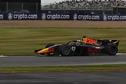 Lawson would then score in every race for the rest of the year. In Silverstone, Lawson missed out on a pole by 0.058s to Logan Sargeant.[52][53] He would turn it around, overtaking Sargeant on the outside of Stowe corner on the opening lap. Midway through the race, he would be fend off Oscar Piastri to take his second win.[54][55] In Race 2, Lawson finished seventh. For the 2nd Silverstone round, Lawson again qualified second, also behind Sargeant.[52] Unfortunately, he was unable to repeat his previous success, this time being passed by Hughes at the start. He would end up in third, and despite the result, he stated that "the pace wasn't dissimilar" compared to his winning pace a week before.[56] Lawson narrowly missed a podium in the second race going wide battling with Pourchaire at the penultimate corner and getting pipped by David Beckmann losing out on fourth by 0.019s.[57][58] Lawson had another great qualifying in third for Barcelona, despite an engine issue likely preventing his chances for pole.[59] Lawson stayed in third until the third last lap, where he overtook Sargeant to finish second.[60][61] Lawson claimed seventh for Race 2 and his consistent podium scoring elevated him to third place in the championship.[62]