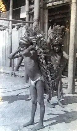 While describing the transportation of rubber from Entre Rios to the port at La Chorrera, Casement wrote: "The fifty men who go down to Chorrera have to carry the whole of this mass of rubber from [Puerto] Victoria, about 1(1/2) miles above the rapid down to Chorrera – a distance of probably 3 miles. At 30 kilos again per load the 16,000 kilos gives each man 10(1/2) to 11 loads to carry, involving 11 journeys of 6 miles. When the rubber is unloaded and stored he will be kept at Chorrera doing any dirty or heavy work at the Station, just as the Boras Indians who found on arrival had to discharge the cargo from the 'Liberal'. He will also be compelled to load the rubber on the down-going steamer and his detention at Chorrera, including the journeys up and down the river in the launch will be not less than 7–9 days."[70]