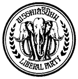 The Liberal Party was founded by Seraneeporm Komlas on 16 September 1982[1] After Seraneeporm Komlas resigned the office of the party leader on 27 July 1986, Narong Kittikachorn son of Thanom Kittikachorn and son-in-law of former military dictator Praphas Charusathien became leader of the party.[2] The party did not field any candidates for the March 1992 Thai general election and was dissolved on 8 January 1993.[3]