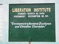The school was founded on March 18, 1946 by members of the United Church of Christ in the Philippines. The school was named as such because the founding was briefly before the Philippines became an independent nation (July 4, 1946), hence the name "Liberation." It was recognized by the Philippine government as an institution of higher education in the same year that it was founded, with Recognition No. 165.