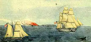 Libertad, meaning 'liberty' in Spanish, was a merchant schooner built on the west coast of Mexico for service between Mexico and the Baja California peninsula and along the coast of Mexico. During the Mexican–American War, she was captured at Loreto, Mexico, along with the schooner Fortuna on 1 October 1846 by the United States Navy sloop-of-war USS Cyane under the command of Commander Samuel Francis Du Pont.