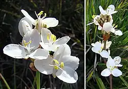 Libertia chilensis, synonym Libertia formosa,[1] called the New Zealand satin flower,[2] snowy mermaid,[3] or Chilean-iris,[4] is a species of flowering plant in the iris family, Iridaceae, native to the Juan Fernández Islands, central and southern Chile, and southern Argentina.[1] It can also be found growing wild in the San Francisco Bay Area and San Bernardino County in California,[5] where it is an introduced species. A rhizomatous evergreen perennial, it has gained the Royal Horticultural Society's Award of Garden Merit.[2]