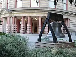 Liberty Bell refers to one of two replicas in Portland, Oregon, United States, of the original Liberty Bell in Philadelphia. The first replica was purchased in 1962, and installed in the rotunda of City Hall in 1964. On November 21, 1970, it was destroyed in a bomb blast that also damaged the building's east portico. The second replica was installed outside of City Hall soon after the blast (c. 1972) with funds from private donations. It was dedicated on November 6, 1975. The bell is listed as a state veterans memorial by the Oregon Department of Veterans' Affairs.