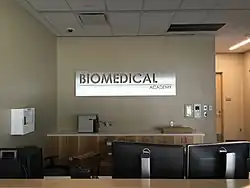 The front office of the biomedical academy, during transition to the new campus.[4]