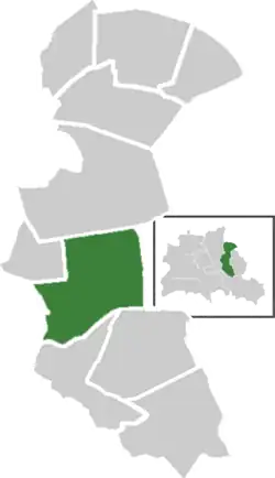 Lichtenberg is located in the middle of its District. It borders with Friedrichshain (in Friedrichshain-Kreuzberg), Prenzlauer Berg (in Pankow), Fennpfuhl, Alt-Hohenschönhausen, Rummelsburg, Friedrichsfelde and Marzahn (in Marzahn-Hellersdorf). It has an area of 7.22 square kilometres (2.79 sq mi).[2]