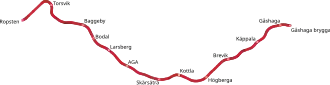 Lidingöbanan (lit. 'the Lidingö Line') is a light-rail line in Stockholm, Sweden, between Ropsten and Gåshaga brygga, serving the southern half of Lidingö island.