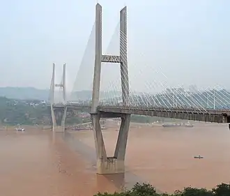 The Lidu Bridge is a cable-stayed bridge which crosses the Yangtze River in the Fuling District of Chongqing, China. Completed in 2007, the bridge cost ¥350 million and has a main span of 398 metres (1,306 ft).[1][2]