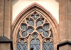 In 1344 the chapel was expanded to a Gothic hall church of three naves.[2] A document about its consecration mentions two altars. From 1415, the south facade was transformed, including a tympanum showing the Adoration of the Magi made by the workshop of Madern Gerthener.[3][4] In 1453 the town council permitted to change an adjacent tower of the fortification to a bell tower. From 1506 to 1509 the church was once more expanded, by Jörg Östereicher.[3] The church remained Catholic, part of the Diocese of Mainz, even when the Reformation was introduced in Frankfurt in 1533.[1]