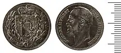 The Liechtenstein krone (German Liechtenstein Krone, plural Kronen) was the currency of Liechtenstein from 1898 to 1921. The coins are rare, although the banknotes are somewhat more common. The krone was divided into 100 heller. Liechtenstein used the Austro-Hungarian krone and Austrian krone after the dissolution of the Austro-Hungarian Empire in 1918, and then switched to the Swiss franc in 1921 due to krone's instability. The Liechtenstein krone had the same amount of precious metal as the Austro-Hungarian krone or the Austrian krone. Coins came in values of 1, 2, 5, 10, 20 kronen. In 1920, small-change notes denominated in 10, 20, and 50 heller were issued as an emergency measure to supplement the coins then available.[1]