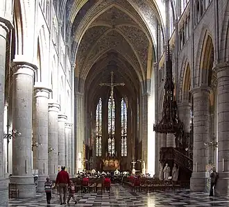 In 1802,[21] the former collegiate church was erected as a cathedral and in 1805 the organs of the old Collégiale Saint-Pierre de Liège and most of the treasures of Saint Lambert's Cathedral were transported there.