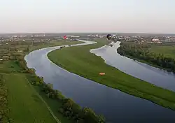 The Lielupe[a] is a river in central Latvia. Its length is 119 km (74 mi), or 310 km (190 mi) if the Mēmele River is counted as part of it. The surface area of its drainage basin is 17,600 km2 (6,800 sq mi).[1] The average fall of the Lielupe is about 0.1 m/km (0.53 ft/mi) and its average flow is 106 m3/s (3,700 cu ft/s), although a maximum of 1,380 m3/s (49,000 cu ft/s) has been reached during floods.