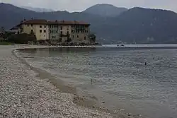 Lierna Castle (Italian: Castello di Lierna) is a castle on the eastern side of Lake Como in Lombardy, Italy. The castle is built on a peninsula that protrudes into the lake[1] and consists of a group of connected buildings, rather than a single building. The main portion of the current buildings was constructed in the 10th century in Romanesque style upon former Roman ruins.[2] The castle includes the 11th-century church of Saints Maurice and Lazarus (Chiesa dei Santi Maurizio e Lazzaro), associated with the Order of Saints Maurice and Lazarus.[2]