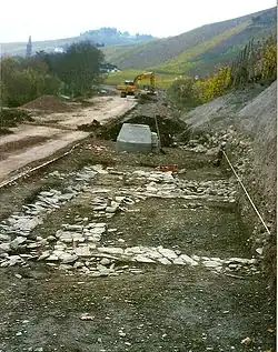 Archaeological finds reveal that settlement history reaches back to Roman times. Witnessing this are the remnants of a Roman aqueduct on the Paulsberg (mountain) above Lieser, surface finds of Roman tiles and a Roman winepressing facility unearthed in 2005 during roadworks at the riverbank.[3] This lay below the vineyards, some 500 m east of the village, but after an emergency excavation, it was filled in again.