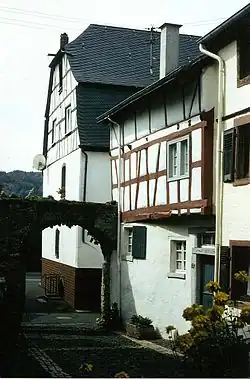 Lieser lay on the Imperial road from Trier to Mainz and had at its disposal a ferry across the Moselle. Given this favourable location, a postal station was established in this unfortified village in the early 16th century on the Dutch Postal Route (Niederländischer Postkurs) from Brussels by way of Augsburg to Innsbruck and Italy.[7] This exposed location on the Imperial road, however, also led to frequent plunderings in times of war. In 1693 and 1698, during Louis XIV's wars of conquest, pontoon bridges were set up across the Moselle to quicken troop transport across the river.