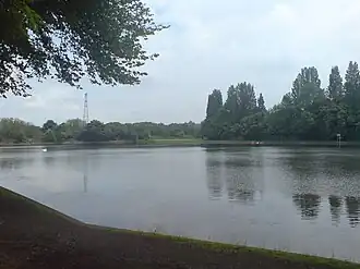 Lifford Reservoir in the Kings Norton district of Birmingham, England was built by the Worcester & Birmingham Canal company in 1815 to compensate Lifford Mill for water lost to the canal.[1] It is located at the junction of the Stratford-upon-Avon Canal and the Worcester and Birmingham Canal and is on the River Rea Cycle Route. Angling is permitted subject to a charge outside the spring close season.[2] Fish in the reservoir include tench, carp, pike, eels, perch, roach and bream.[3]