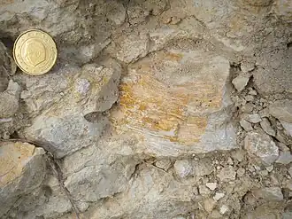 The changeover to the overlying Angoumian is very progressive but can be defined by the first appearance of detritic layers, pellets of different sizes and quite common annelid tubes as well as by the disappearance of the pelagic forams. The lower 5 to 8 meters of the Angoumian cannot really be separated from the Ligérian in the field and are therefore most often attributed to the Ligérian on geological maps.
