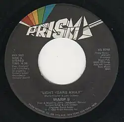 "Light Years Away" is the second single by the hip hop group, Warp 9, released in 1983. Written by Lotti Golden and Richard Scher and produced by Lotti Golden, Richard Scher, and John "Jellybean" Benitez,[1] the song appears on the group's debut album It's a Beat Wave (Prism Records) [2] charting on the Billboard R&B and dance charts.[3]