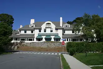 The Lighthouse Inn, originally known as Meadow Court, is a Colonial Revival hotel building at 6 Guthrie Place in New London, Connecticut. The Mission style main house was designed by William Ralph Emerson and built in 1902 as a country home for steel industry magnate Charles S. Guthrie. It is one of the few examples of this architectural style in the city, and became a popular dining and event venue after opening as an inn in 1927. The building and surviving estate remnants were listed on the National Register of Historic Places in 1996.[1] It was listed for sale by the city in February 2014, with historic preservation restrictions.[2]