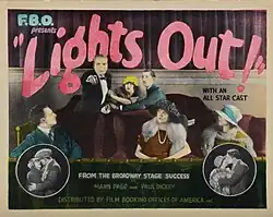 Lights Out is a 1923 American silent crime drama film directed by Alfred Santell and starring Ruth Stonehouse, Walter McGrail and Theodore von Eltz.[1] It is based on the 1922 play Lights Out by Paul Dickey and Mann Page, later adapted into the 1938 film Crashing Hollywood.[2] The remake was more light-hearted than the melodramatic tone of the original.