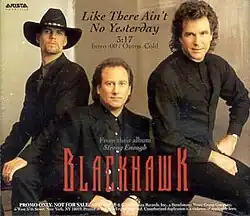 "Like There Ain't No Yesterday" is a song recorded by American country music band Blackhawk. It was released in November 1995 as the second single from their album Strong Enough. It peaked at number 3 on the United States Billboard Hot Country Singles & Tracks, while it was their second number-one hit in Canada. The song was written by Walt Aldridge and Mark Narmore.