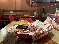 Lil Woody's is a restaurant chain based in Seattle, with multiple locations in the metropolitan area as well as Tokyo. Among burgers on the menu are the Lil Woody, which has Tillamook cheddar cheese, onions, pickles, ketchup, and mayonnaise, and the Big Woody (add bacon).[2] The Trotter has caramelized onions, apple, bacon, and horseradish sauce.[3] Other burger toppings have included blue cheese, and pickled figs,[4] or queso and roasted chiles.[5] Lil Woody's has also served an Impossible burger,[6] as well as chicken fingers, French fries,[6] beer, cocktails, milkshakes, and wine.[3][5]