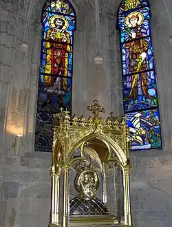 Painted windows of Lili Árkayné Sztehló in the Héderváry Chapel (Győr Cathedral) and the Reliquary of Ladislaus I of Hungary