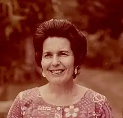 After an initial attempt to pioneer to the Solomon Islands was unsuccessful, 'Alá'í decided to pioneer to Samoa.[1] On the journey from Australia towards Samoa, 'Alá'í attended a Bahá'í Summer School in Auckland, New Zealand, where she met her future husband Suhayl 'Alá'í.[1][15][16] On 14 January 1954, 'Alá'í arrived at Apia, Western Samoa, and was named a Knight of Bahá’u’lláh in the Roll of Honour by Shoghi Effendi, a title awarded to Bahá'ís who opened up new territories to the Bahá'í Faith during the Ten Year Crusade.[17] 'Alá'í was successful in securing employment the day after arrival.[1] However, in the first few months, she also experienced health challenges.[2][1] 'Alá'í and Suhayl 'Alá'í married in Suva, Fiji in November 1954, with the wedding ceremony arranged by the Local Spiritual Assembly of Bahá'ís of Suva.[1] This was the first Bahá'í marriage in the South Pacific.[16][18] The wedding itself was notable for the cultural diversity and distances travelled, by the bride, groom, and guests.[19][20] The couple then moved back to Apia, Western Samoa, and over the years two children were born and raised in Western Samoa.[16] The parents of Suhayl 'Alá'í and his two younger siblings also pioneered as Bahá'ís in Apia, Western Samoa, but at the suggestion of the Guardian of the Faith, Shoghi Effendi, later pioneered to Hastings, New Zealand.[21] In 1959, 'Alá'í, her husband and their two children permanently moved to American Samoa to pioneer and keep this territory open to the Faith.[1][22] Their third child was born and raised in American Samoa, and they later established a business there.[2]