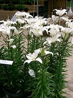 Lilium 'Navona' is an Asiatic lily hybrid variety of white lilies,[1][2] used in cut-flower production worldwide.