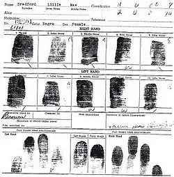 The driver never fixed the punch card and Bradford never left the front seat. She was arrested for disorderly conduct, booked, fingerprinted and paid a small fine.[5]