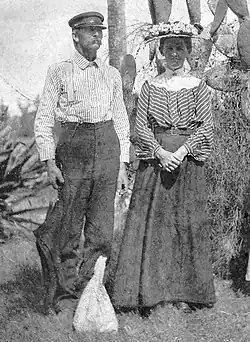 Lillie Pierce Voss was born Lillie Elder Pierce on August 15, 1876, at United States House of Refuge No. 3 in Dade County, modern-day Delray Beach in Palm Beach County.Voss was the first white child to have ever been born between Jupiter, Florida, and Miami, Florida, a geographic area that today has nearly 6 million inhabitants.[4] A National Register of Historic Places marker, erected in the 1970s, sits upon the location of her birth, along State Road A1A at the Delray Beach public beach. She was the daughter of Captain Hannibal Dillingham Pierce and Margretta Moore Pierce, who in 1872 became one of the first non-Native American families to settle in Southeast Florida. Together with her older brother, Charlie W. Pierce, she led an adventurous childhood in the remote, wild jungle frontier of Florida. As a child, she learned to interact with the Seminole Indians and became an expert at hunting, fishing, and sailing. The fictionalized childhood exploits of her and her brother Charlie are chronicled in the best-selling children's book series, The Adventures of Charlie Pierce, written by her great-grandson, author Harvey Oyer.[5] She was largely educated at home and was a prolific writer who left behind many letters and diaries that are frequently used by historians to obtain glimpses of early pioneer life in South Florida.[6]