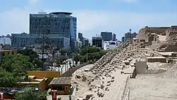 Pachacámac, built from 3rd century to 15th century, was one of the most important pre-Columbian centers of pilgrimage on the Peruvian Coast.[15] In the image the Temple of the Moon.