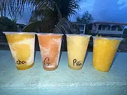 Limbers are frozen in cups without a stick.[1] They often include a frozen sweet, like cream, and fruit juice.[2] Syrups can also be used. Traditional flavors include parcha (passionfruit), tamarind, pineapple, and coconut.[2] Limbers are eaten by squeezing the bottom of the cup to push the pop out.[1] They can also be prepared in bags.[2]