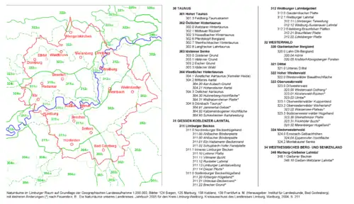 The Limburg Basin (German: Limburger Becken) is one of the two large intramontane lowland areas within the Rhenish Massif in Germany, the other being the Middle Rhine Basin. It forms the central part of the natural region of the Gießen-Koblenz Lahn Valley between the Weilburg Lahn Valley Region and the Lower Lahn Valley on both sides of the Lahn around the town of Limburg.