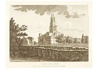 The Limehouse Cut was authorised by the Lee Navigation Improvement Act 1767 (7 Geo. 3. c. 51),[6][7] after the engineer John Smeaton identified the need to make several cuts and to replace existing flash locks on the river with pound locks.[8] It occurred to Smeaton[9] as an afterthought[10] to have a cut from Bromley to the Thames at Limehouse and his assistant Thomas Yeoman had the same idea. Thomas Yeoman was appointed as the surveyor to the River Lee trustees, and one of his first tasks was to investigate a route for the Limehouse Cut. As authorised by Parliament, it would provide a short-cut from the Lee Navigation at Bromley-by-Bow to the River Thames "at or near Limehouse Bridge Dock",[11] avoiding the tortuous curves of the lower reaches of the River Lea at Bow Creek, and the need to wait for the tide to make the long detour round the Isle of Dogs. The trustees accepted Yeoman's proposed route on 14 September 1767, which would terminate at Dingley's Wharf at Limehouse.