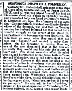 - "Suspicious Death of a Policeman". Lloyds Weekly Newspaper. 6 October 1872.