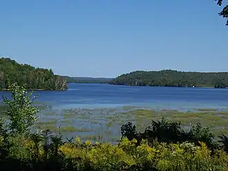 The area and shoreline are heavily forested and abundant with deer, bear, small game, and moose. The lake contains several species of fish: Largemouth bass, Smallmouth bass, Yellow perch, Rock bass, Lake trout, and Pumpkinseed. The wild rice wetland in front of the marina hosts large rafts of migrating loons in the fall and spring. Each bay of the lake generally hosts a nesting loon family through the summer.