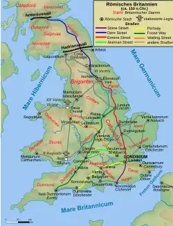 - ^ Peter Salway (2001), p. 281, Richard Hobbs / Ralf Jackson (2010), pp. 35-36, Matthias Springer ( 2004), p. 33 , A. Simon Esmonde-Cleary (1991), pp. 45-46, Alex Woolfe (1998), p. 207; Nennius: Historia Brittonum 66, Doel/Loyd (2000), pp. 10-14, 17 -18 and 30.
