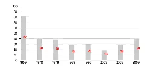| Year | 1959 | 1970 | 1979 | 1989 | 1996 | 2003 | 2008 | 2009 |