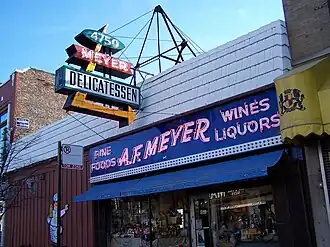 The commercial heart of Lincoln Square is located at the intersection of Lawrence, Western and Lincoln Avenues. Lincoln Avenue southeast of this intersection is home to a wide variety of restaurants and shops. Lincoln Square is historically known as a heavily German influenced and populated neighborhood,[5] but now one is just as likely to see shops catering to the Thai culture.[6][7] Still, the neighborhood is home to a number of German businesses, including Merz Apothecary and Lutz Café & Bakery, and is the home of the Chicago branches of DANK (the German American National Congress) and the Niedersachsen Club. The German-language weekly newspaper Amerika Woche was born in Lincoln Square in 1972, though its original headquarters above the Brauhaus is now only a bureau.